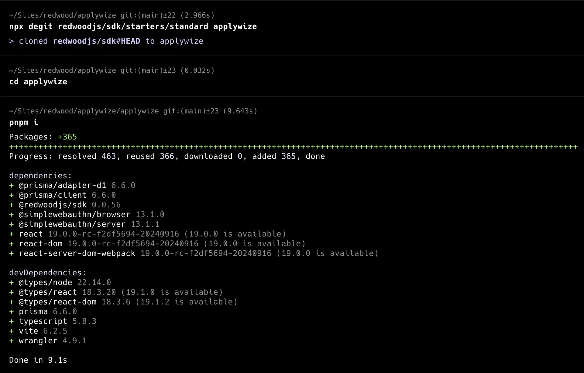 The commands you just ran created a directory called applywize with the RedwoodSDK standard starter project structure.